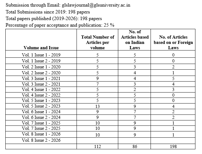 No. of papers published in GLS Law Journal |